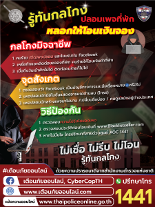 - คนร้าย เปิดเพจปลอม และโฆษณาใน Facebook