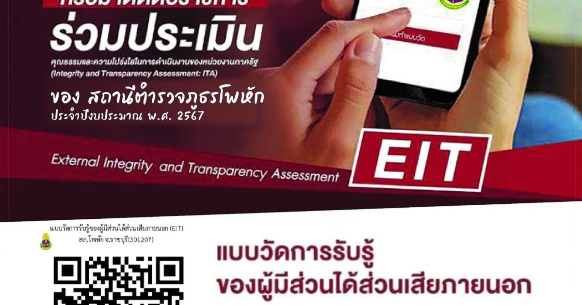 ขอเชิญผู้มารับบริการหรือมาติดต่อราชการร่วมประเมินคุณธรรมและความโปร่งใสในการดำเนินงานของหน่วยงานภาครัฐ