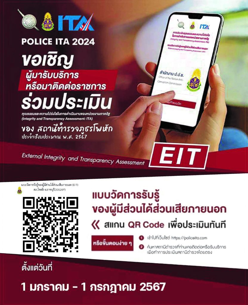 ขอเชิญผู้มารับบริการหรือมาติดต่อราชการร่วมประเมินคุณธรรมและความโปร่งใสในการดำเนินงานของหน่วยงานภาครั