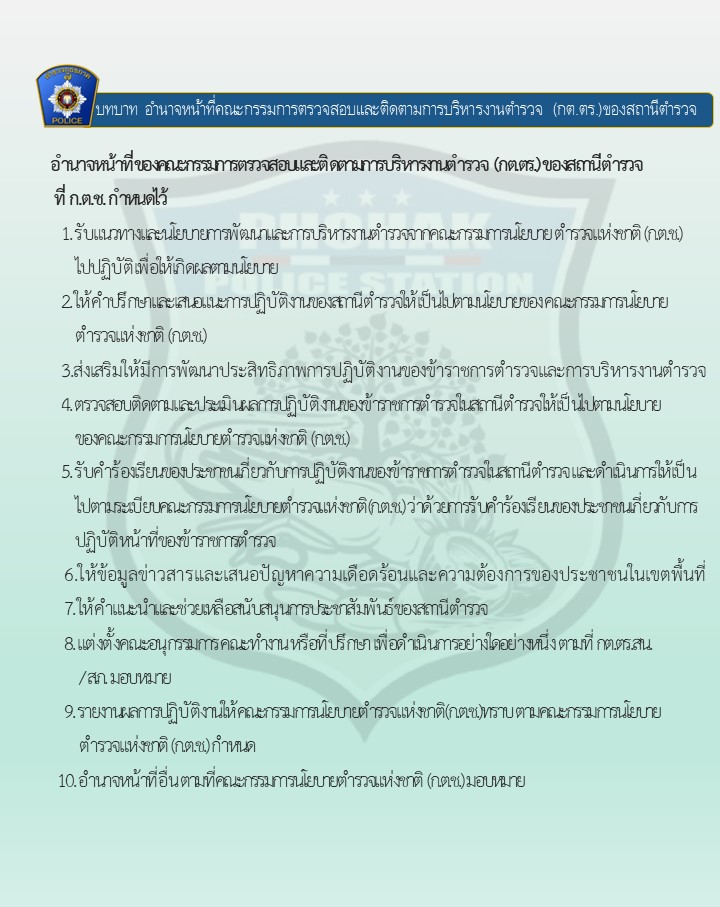 บทบาท อำนาจหน้าที่คณะกรรมการตรวจสอบและติดตามการบริหารงานตำรวจ (กต.ตร.)ของสถานีตำรวจ